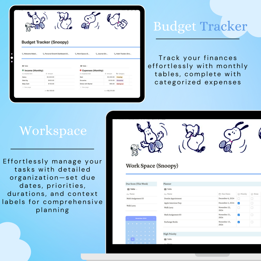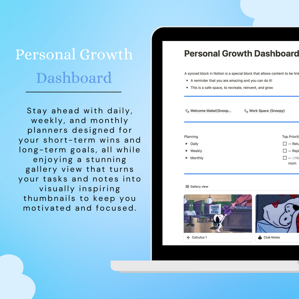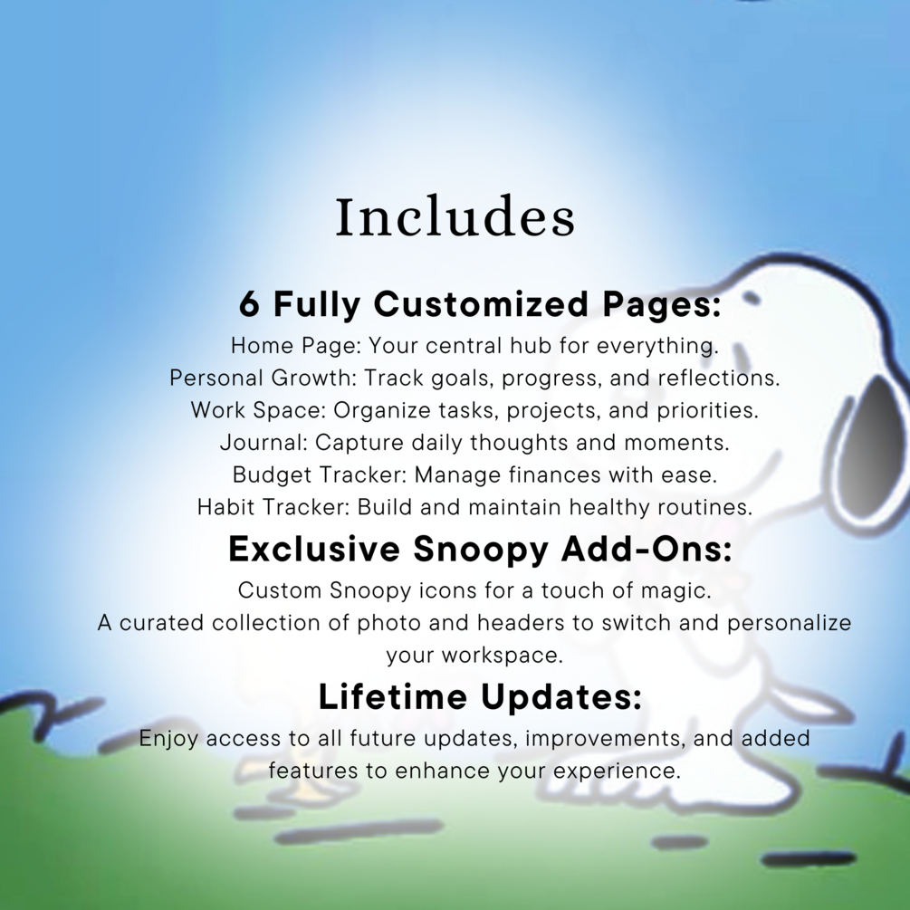 Introducing the Snoopy-Themed Notion Template – Your Perfect Companion for a Whimsical, Productive Life!