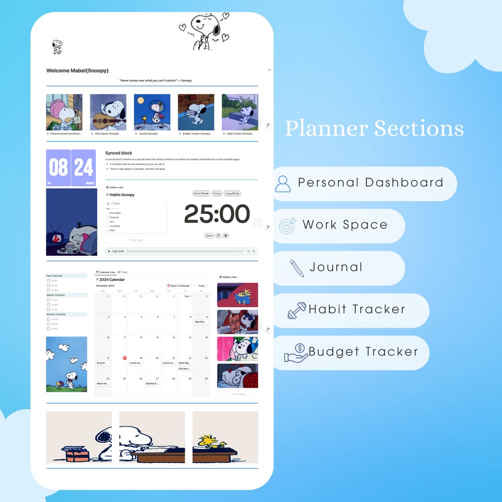 Snoopy-Inspired Notion Template | Notion All-In-One Planner, Aesthetic Notion Organizer, Notion Editable Template