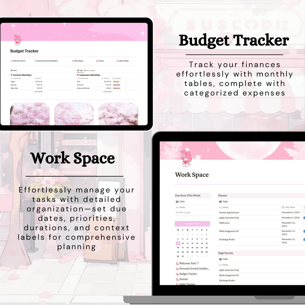 Cherry Blossom-Inspired Notion Template | Notion All-In-One Planner, Aesthetic Notion Organizer, Notion Editable Template